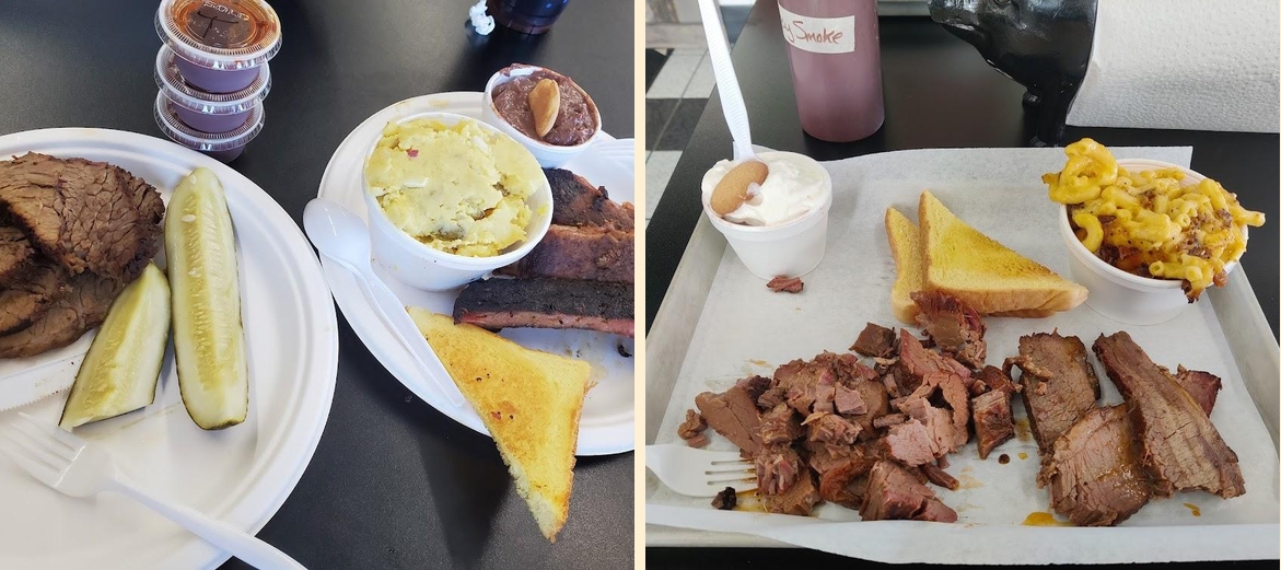 Customers rave about the brisket and pulled pork, both known for their tenderness and smoky flavor. Many diners recommend the mac and cheese with bacon as a must-try side dish. Others love the welcoming feel of the place, often citing quick service and friendly staff. The banana pudding also receives high praise, reminiscent of homemade desserts. Outdoor seating provides a bonus for sunny days, adding to the charm of this unique barbecue spot.